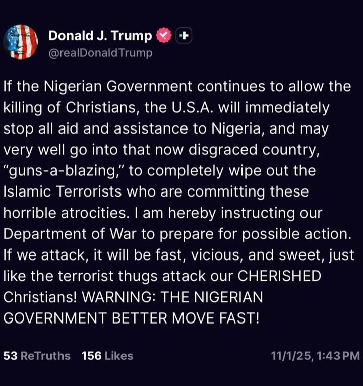 1. Trump’s Threat of Military Action in Nigeria (November 2025)