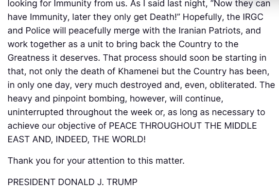 The President urged Iranian citizens to seize this moment as 'the single greatest chance for the Iranian people to take back their Country.'