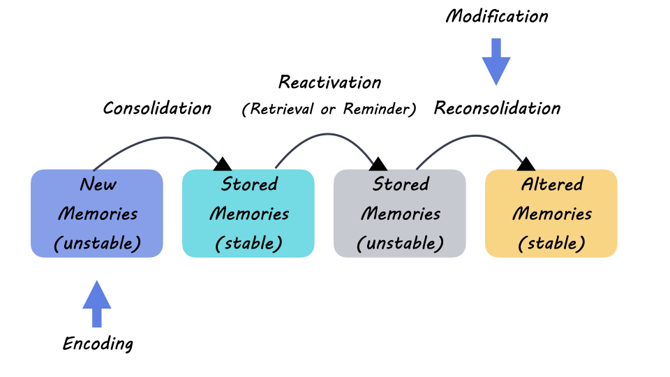 It alters it and, unlike a video or picture captured on your mobile, it adjusts these memories to fit your current state of mind, emotions and even knowledge level. This process is called reconsolidation.
