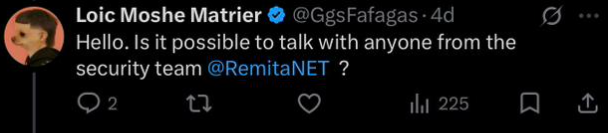 A researcher using the handle @GgsFafagas on X had attempted to contact Remita's security team days before the breach went public, cryptically telling followers: "You will probably know what's happening by tomorrow morning." He later posted: "Imagine Remita is in very deep shit".