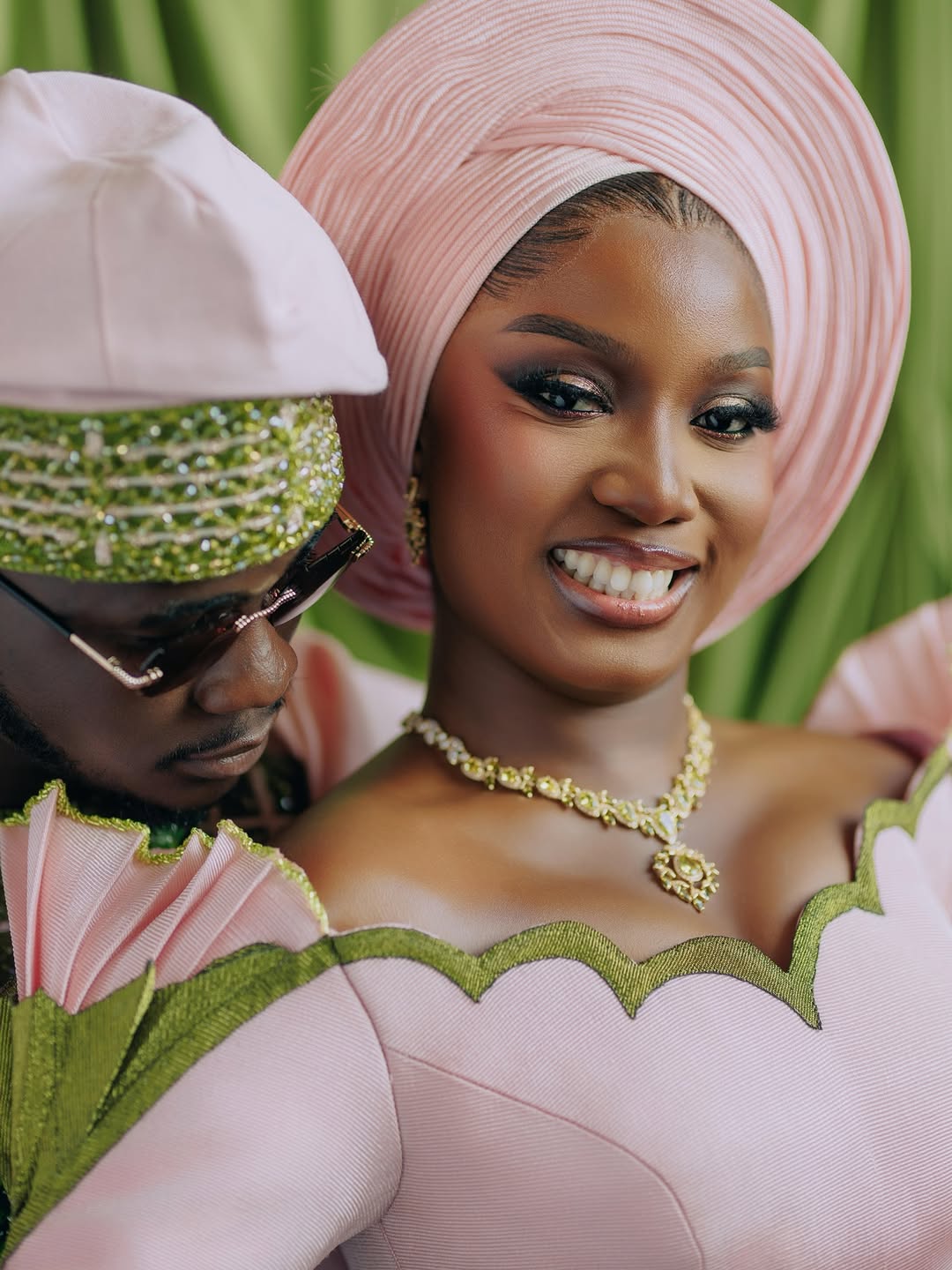 Blush & Green Elegance: Simi Sanya and Femi Dapson Turn Heads with Stunning Traditional Wedding Looks