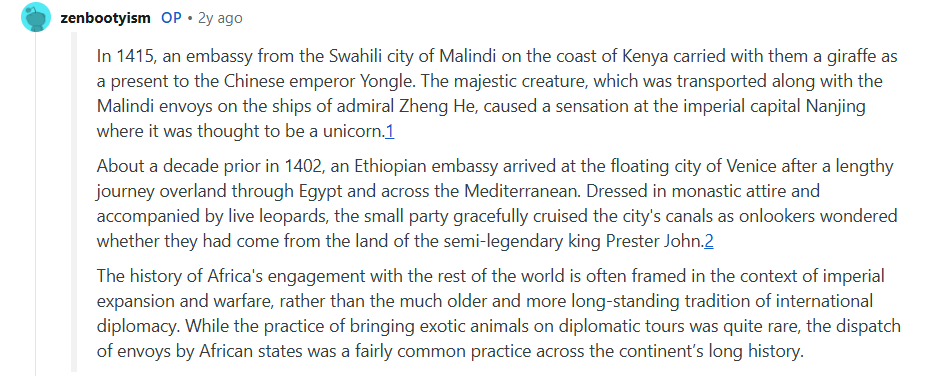 For example, in the 1400s, East African city-states on the Swahili coast sent diplomats and gifts, including giraffes, to China to build trade and political connections.