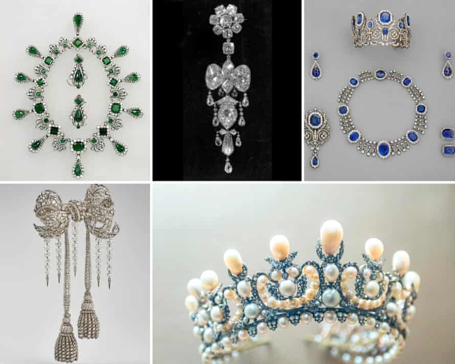 A belt ornament in the form of a diamond bow, adorned with tassels and more than 2,400 diamonds, plus a white diamond reliquary brooch dating to 1855, are also reported stolen.