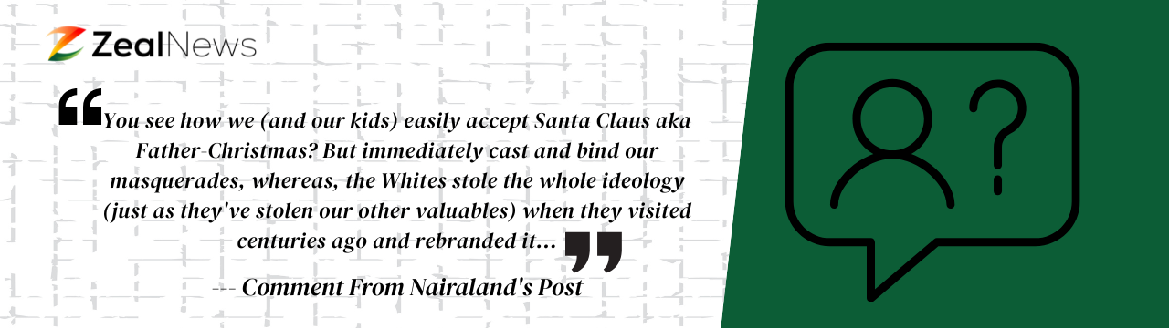 There is no credible historical line linking Egungun or Mmanwu to Santa Claus. Their origins, meanings, and religious foundations are different. Saying one was stolen from the other sounds dramatic, but it doesn’t stand on evidence, and weak arguments weaken the point.