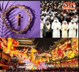 Three distinct traditions, Christianity, Islam, and Chinese culture that observe the Lunar New Year, marking sacred time within the same calendar window.