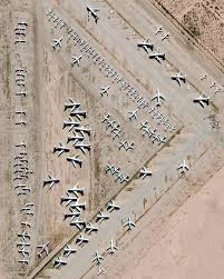 Airlines worldwide send their unused planes here for storage, with some maintained for future use, but many ultimately disassembled for parts or scrap metal. The landscape of colorful tail fins against the beige desert backdrop creates a striking image for aviation experts, resembling a scene from a movie.