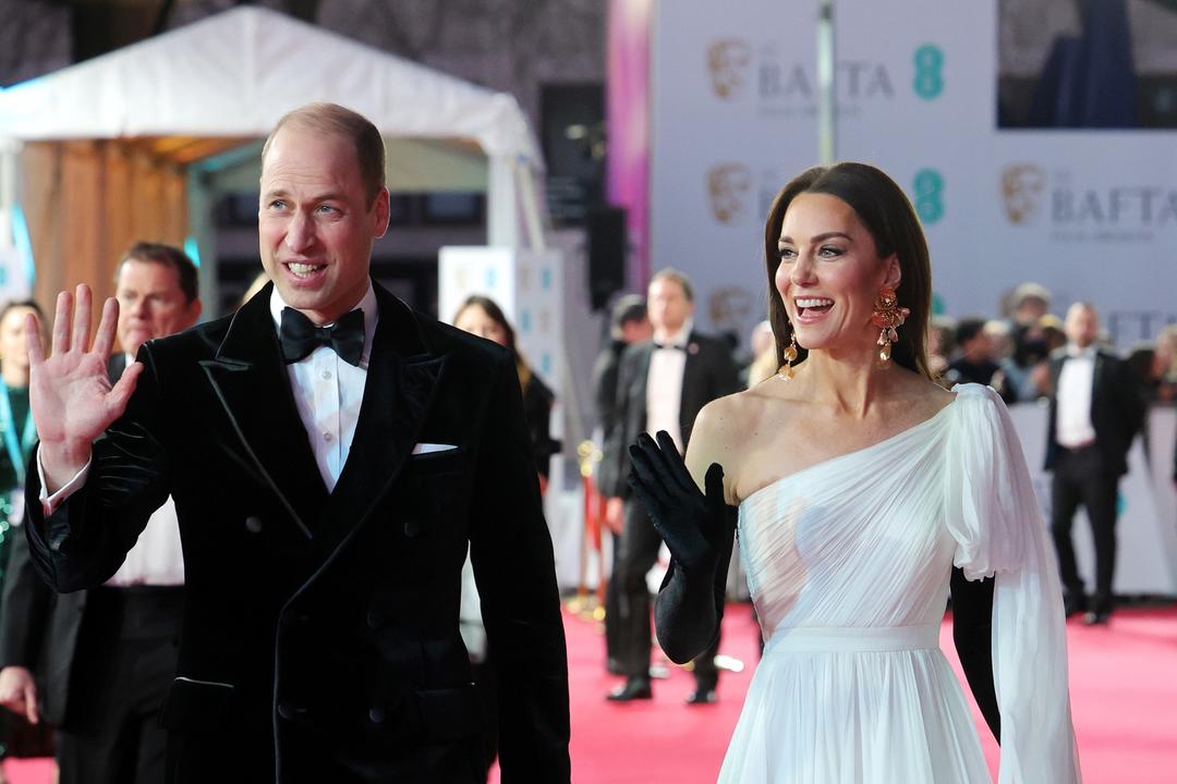 William, BAFTA president since 2010, wore a burgundy velvet jacket, while Catherine stunned in a pink Gucci gown.